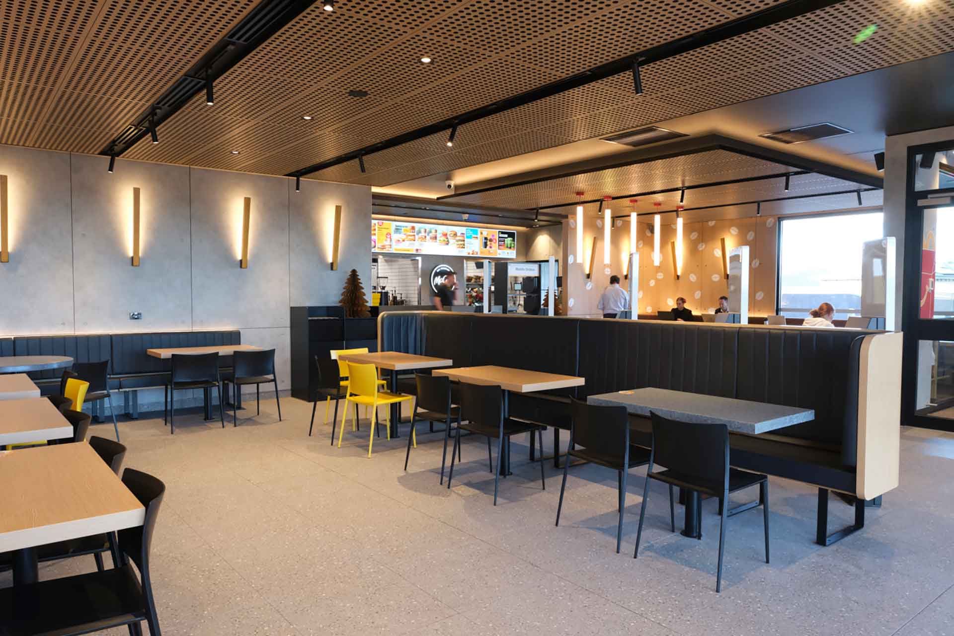 The build included structural construction of the restaurant (slabs, framing and roof structure), internal and external architectural finishes in line with McDonald’s latest BIO MOD design standards, and full coordination and commissioning of mechanical, electrical, hydraulic and fire services. The scope also covered commercial kitchen and BOH services integration, external branding and signage, landscaping, council compliance works, and ongoing liaison with authorities to secure all required statutory approvals.